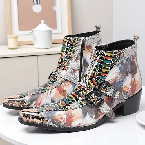 stivaletti da uomo con stampa multicolore: unici e alla moda, perfetti per l'abbigliamento casual, le feste alla moda e le uscite urbane