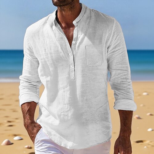 Per uomo Camicia camicia di lino Camicia popover Maglietta informale Camicia di cotone Liscio Hawaiano Per eventi Nero Bianco Vino Blu marino Manica lunga Colletto alla coreana Primavera Autunno