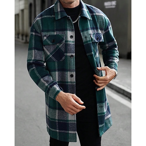 Per uomo Giacca-camicia Giacca camicia Giacca invernale Plaid Vacanza Abbigliamento quotidiano Nero Vino Arancione Cachi Manica Lunga Bavero Autunno Inverno Abbigliamento Tasca
