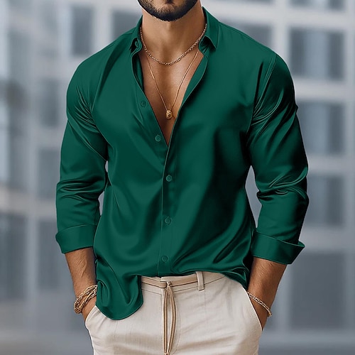 Per uomo Camicia Camicia di flanella Camicia con bottoni Camicia da carico Tinta unica Esterno Ufficio Nero Bianco Verde chiaro Vino Manica lunga Collo ripiegabile Primavera Autunno Abbigliamento