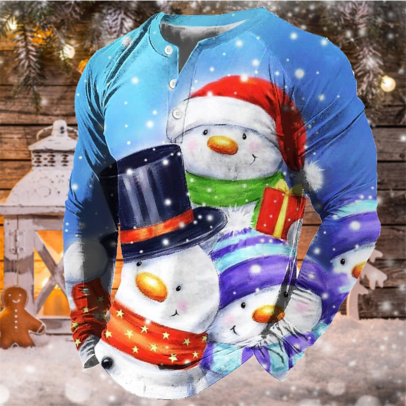 Christmas Sweater With Snowmen Mens Graphic Shirt Tee Henley Snowman Red Blue Purple Green Light 3D Print Outdoor Long Sleeve Pink Cotton