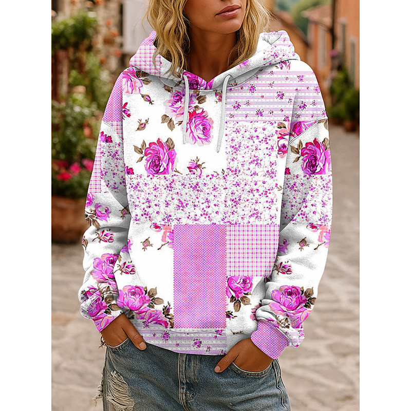 Women's 3D Print Vintage Boho Hoodie Patchwork Hoodie Sweatshirt Floral s Floral Graphic Vintage Retro Casual Long Sleeve Hooded Street Casual Holiday Pink Blue Purple Green Spring Fall Winter