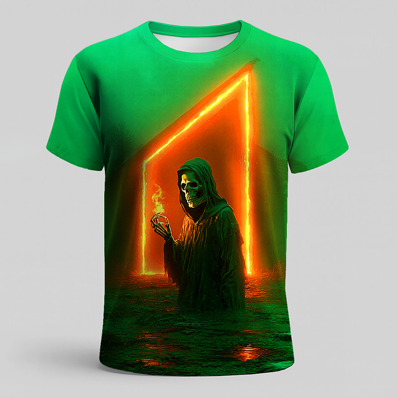 Halloween Men's Optical Illusion 3D Reaper T Shirt Short Sleeve T shirt 3D Print Crew Neck Shirt Exaggerated Designer Horror Party Street Holiday Blue Green Summer Spring All Seasons Clothing Apparel