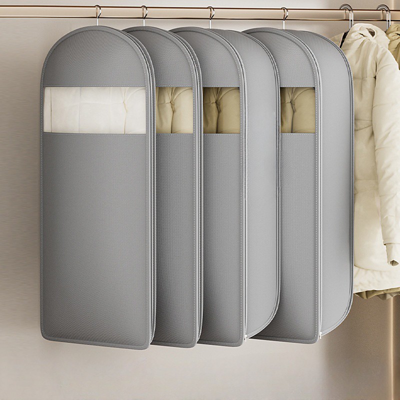 Space Saving Hanging Garment Bag with Self Compression Zipper, Dust Cover for Coats Down Jackets, Closet Clothes Organizer with Clear Window