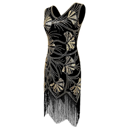 Anni Ruggenti Anni 1920 Lunghezza al ginocchio Abito Flapper Senza maniche Il grande Gatsby Paillettes Frange Scollo a V Costume Per donna Natale Carnevale Mascherata Festa a tema retrò Danza