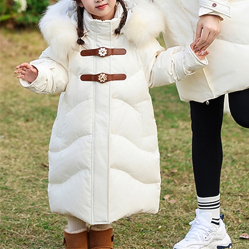 Bambini Ragazze Giacca in piuma Giacca Imbottita Tinta unica Sport Bordo in pelliccia Tasca Tenere al caldo Antivento All'aperto Cappotto Capispalla 4-12 Anni Inverno Nero Bianco Rosa