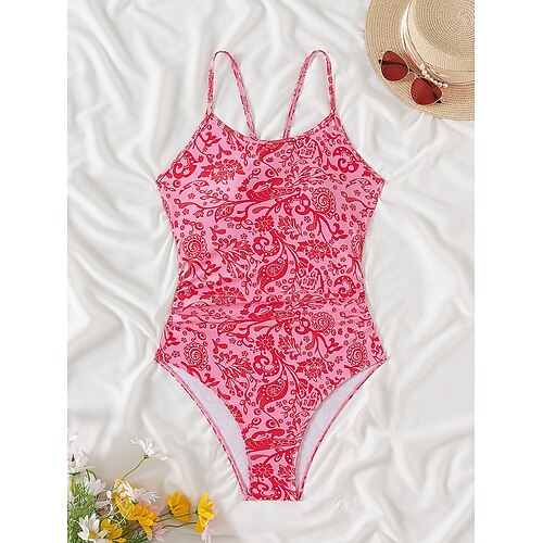 Per donna Costumi da bagno Intero Monokini Mutande Costume da bagno Controllo della Pancia Vita alta Snello Senza schiena Vacanza Vintage Ombre Grafico Scollo Tondo Senza Maniche Costumi da bagno