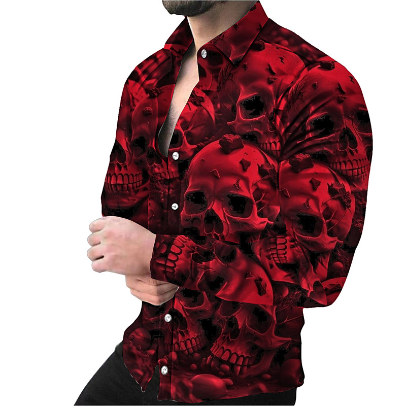 Men's Skulls Shirt Summer Shirt Beach Shirt Long Sleeve Hawaiian Casual Horror Vacation Street Hawaiian Spring Fall Lapel Print Black 1 Black Red Gray Black 2