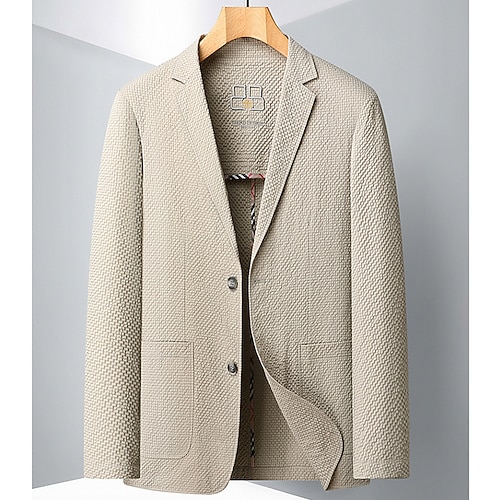 giacca blazer da uomo in seersucker, colletto a lancia, moda casual, tinta unita, bianco, kaki, blu scuro, vestibilità su misura, monopetto, due bottoni