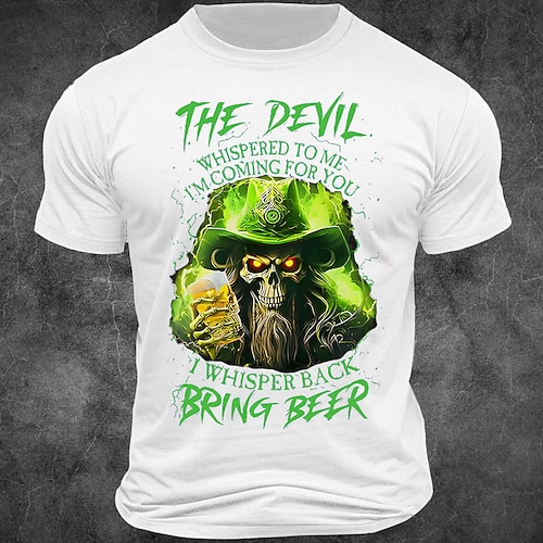 Festa di San Patrizio Per uomo Teschio Quadrifoglio Birra Maglietta 100% Cotone Manica Corta Grafico Camicia Bianco Verde militare Blu scuro Maglietta comoda Vacanza Streetwear Abbigliamento di