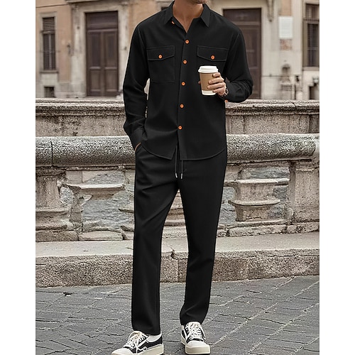 Per uomo Tuta da Ginnastica Maglietta Camicie e pantaloni Impostato Bavero All'aperto Vacanza Quotidiano Coulisse Tasca Semplice Nero Cachi Verde militare Abbigliamento sportivo Sport Moda Autunno