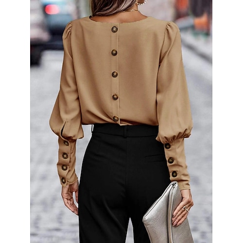 Per donna Camicia Elegant Elegante Raso/Satin Tinta unica Affari Moderno Casual Manica Lunga Girocollo Top Regolari Lavoro Abbigliamento Formale Nero Verde militare Marrone Estate Primavera