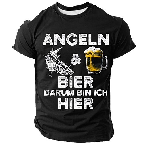 T-Shirt Grafica Uomo Pesca Birra 'Angeln Bier Darum Bin Ich Hier' Tee Divertente Stile di Vita Maniche Corte