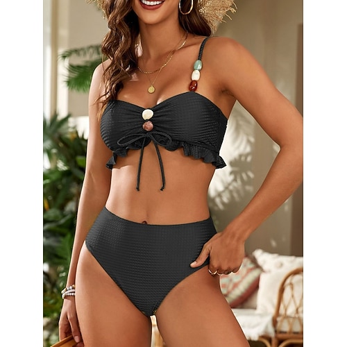 Damen Bikini 2-Teilig Badeanzug Frech Slim Rückenfrei Urlaubs Strandbekleidung Einfarbig V-Ausschnitt Ärmellos Bademode