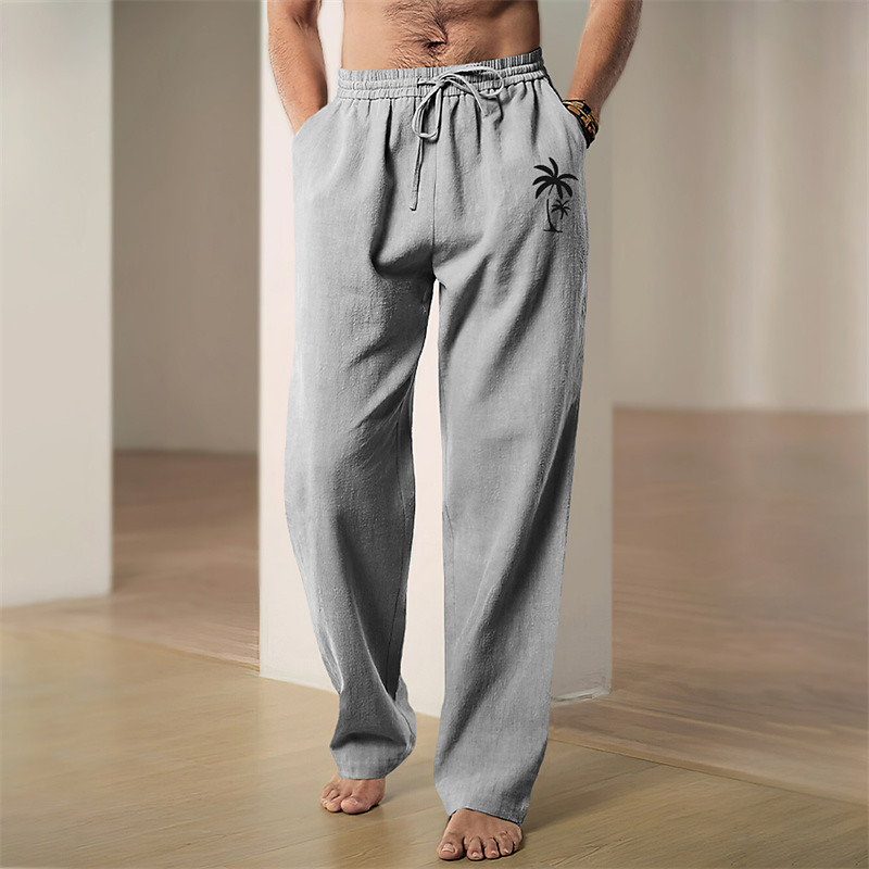 Men's Coconut Tree Summer Pants Pants Trousers Mid Waist Casual Daily Wear Vacation Going out Spring Fall Black White Blue