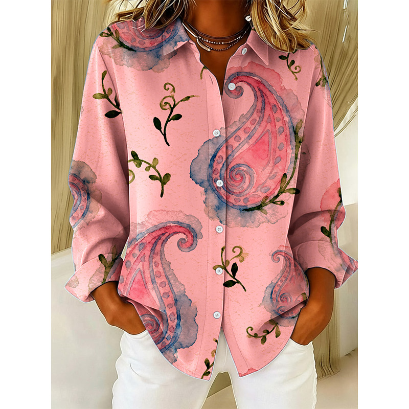 Women's Shirt Paisley Vintage Casual Long Sleeve Shirt Collar Regular Tops Daily Buttons Print White Pink Spring Fall Winter