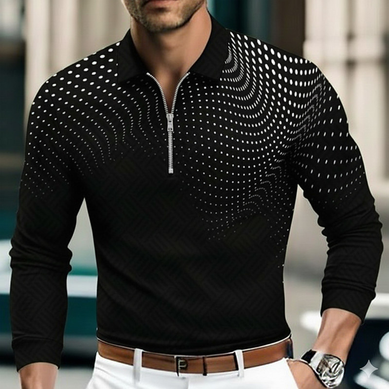 Men's Geometric Polo Long Sleeve Turndown Modern Leisure Athleisure Casual Daily Zipper 3D Print Spring Fall Winter Black Blue Green