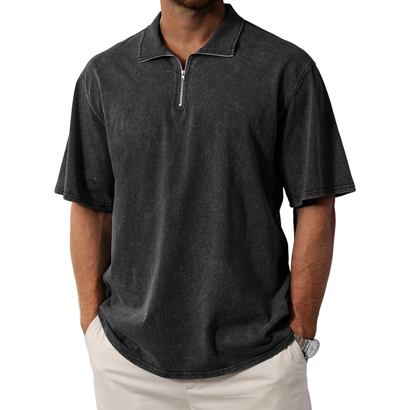 Men's Zip Polo Golf Shirt Casual Holiday Zip Lapel Short Sleeve Fashion Basic Plain Vintage Style Quarter Zip Summer Spring Spring Summer Regular Fit Light Blue Army Green Black Pink Navy Blue