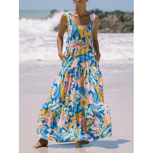 Per donna Abito maxi Abito a trapezio Abito Sottoveste Vacanza Casual All'aperto Uscire Vestibilità comoda Floreale Grafico Senza Maniche Spalline sottili Blu Azzurro cielo Arancione Verde Estate