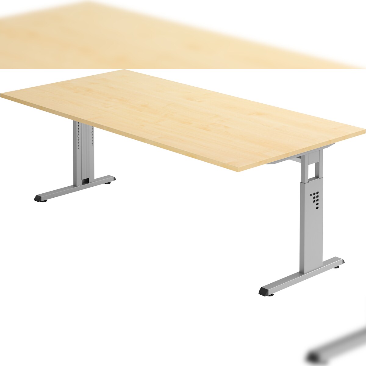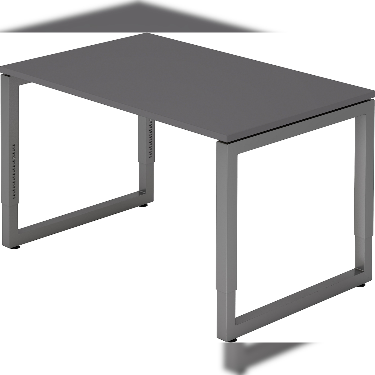 bümö höhenverstellbarer Schreibtisch R-Serie 120x80 cm in graphit, Gestell in Graphit - PC Tisch klein für's Büro manuell höhenverstellbar,