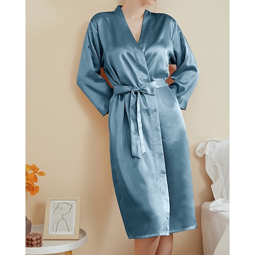 Per donna Accappatoio Casual Morbido Raso Colore Puro Quotidiano Casa Da letto Manica Lunga Scollo a V Nero Bianco Verde chiaro Rosa Blu marino Estate Primavera Vestibilità regolare
