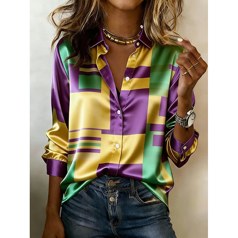 Mardi Gras Women's Shirt Graphic Geometric Abstract Vintage Stylish Modern Long Sleeve Shirt Collar Long Tops Daily Holiday Light Purple Summer Spring