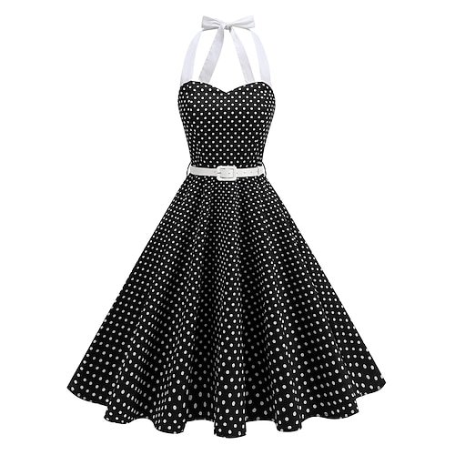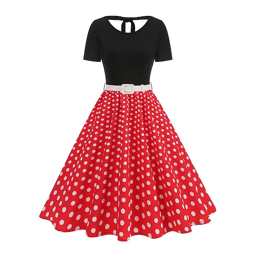 Elegante Classico Anni 1950 Midi Abito a Linea Abito Swing Vestito Svasato Maniche corte Pois Linea ad A Costume Per donna Carnevale San Valentino Mascherata Vacanza Abbigliamento Quotidiano Addio al