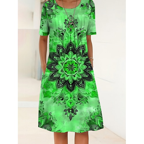 Per donna Abito Midi Abito Floreale Abito Stampato Classico Moderno Quotidiano All'aperto Vacanza Vestibilità regolare Fiore Mezza Manica Girocollo Rosa Verde scuro Arancione Estate