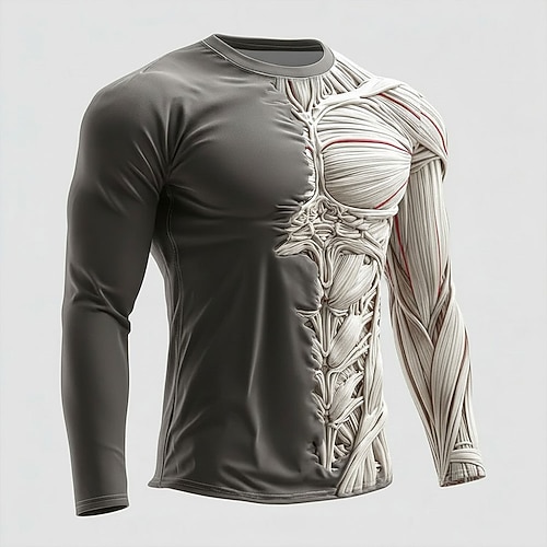 Herren 3D Simulation T Shirt Langarm T-Shirt 3D-Druck Rundhalsausschnitt Hemd Mode Übertrieben Täglich Straße Schwarz Weiß Braun Sommer Frühling Herbst Bekleidung S M L XL XXL XXXL