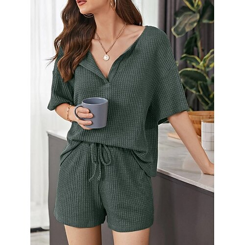 Per donna Set da due pezzi Set di Pantaloncini Manica Corta Scollo a V Tinta unica Moda Streetwear Casuale Quotidiano All'aperto Nero Bianco Giallo Estate Vestibilità regolare