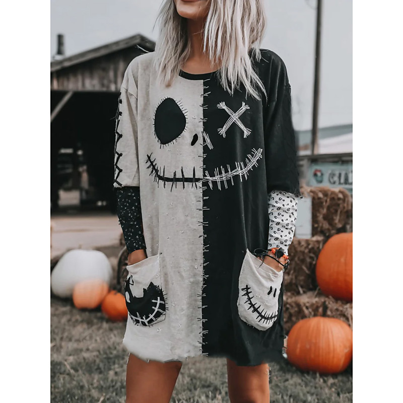 Women's T shirt Monster Long Sleeve Graphic Pumpkin Letter Vintage Stylish Long Sleeve Crew Neck Round Neck Long Tops Daily Going out Weekend Pocket Print Dark Gray Spring Fall Prefall