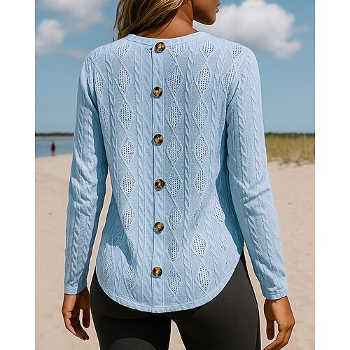 Per donna Felpa Moda Tinta unica Uncinetto A V Intrecciato Manica lunga Top regolari Maglia Ufficio Nero Rosa Primavera Autunno