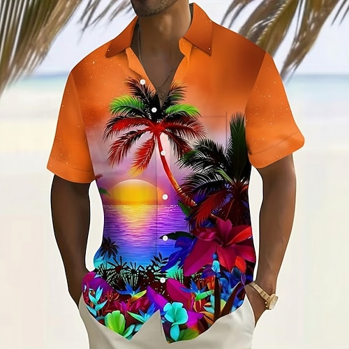 Per uomo Albero di Cocco Natura e paesaggi Piante Tropicali Camicia hawaiana estiva Camicia con Bottoni Camicia Aloha Manica Corta Hawaiano Vacanza Estate Primavera Collo ripiegato Stampa 3D camicie