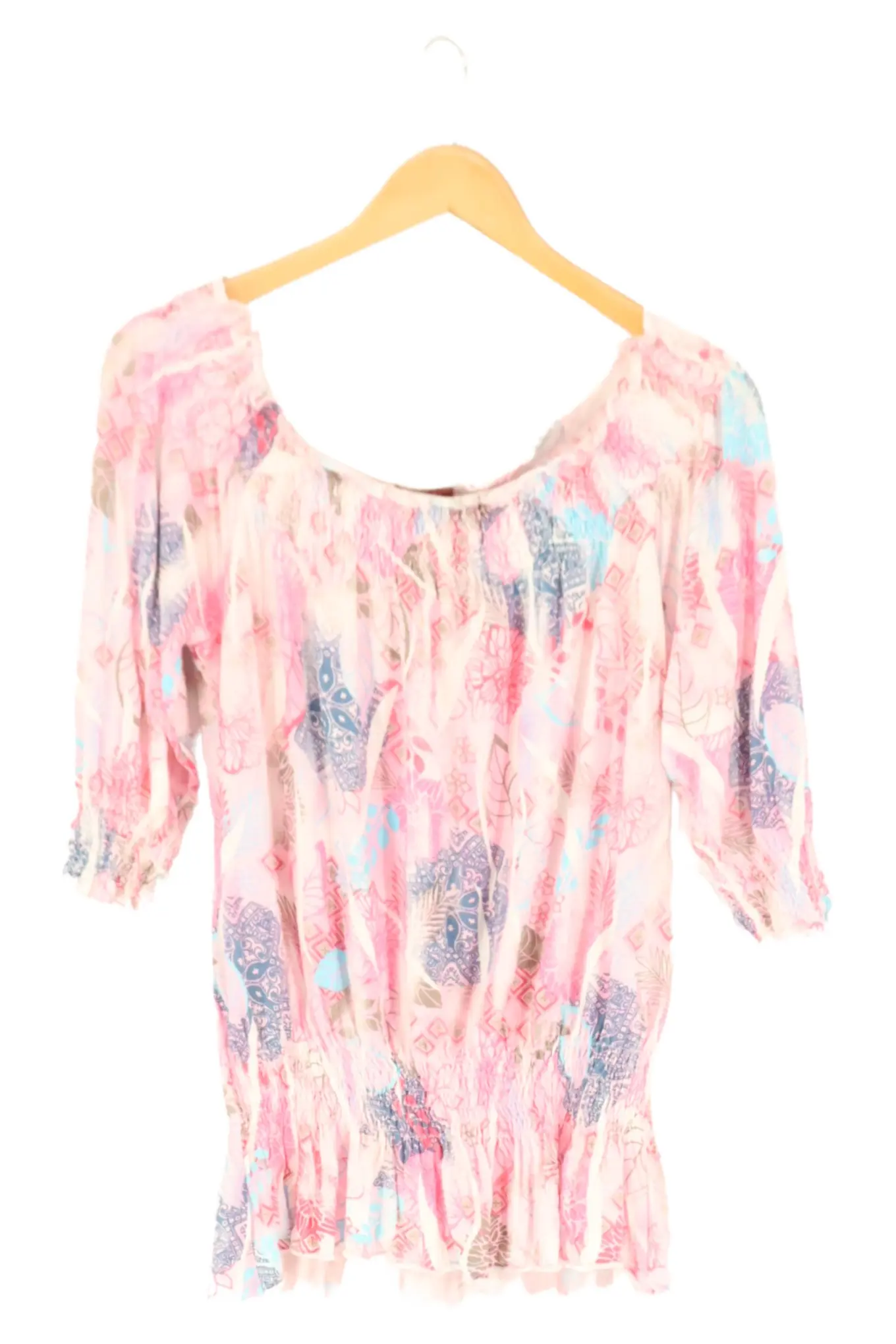 BUFFALO Damen Bluse Gr. 36/38 Rosa Bohemian Vintage Look