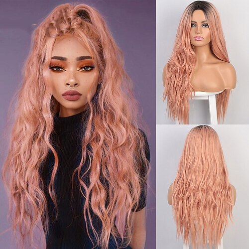 Parrucche sintetiche Diritto naturale Con fascia frontale A macchina Parrucca 26 pollici Nero e Oro Marrone chiaro Marrone scuro 613 Ombre Brown Capelli sintetici Per donna Soffice Morbido Di tendenza