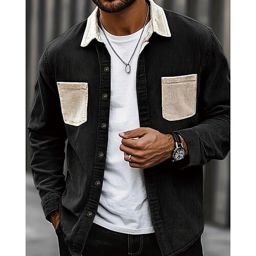 Per uomo Camicia Camicia casual Camicia di Velluto a Coste Camicia con Bottoni Blu Nero Verde militare Grigio Manica Lunga Blocco di colori Collo ripiegato Vacanza Casuale Tasche Multiple