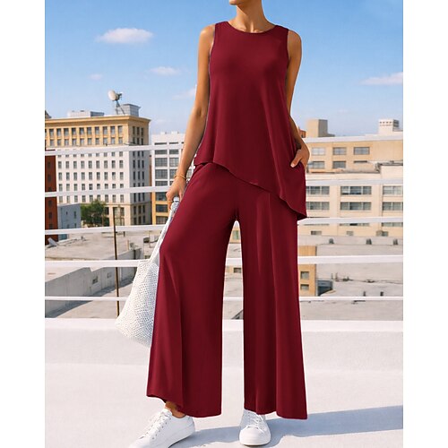 Per donna Set di Pantaloni Manica Lunga Girocollo Tinta unica Moda Streetwear Casuale Quotidiano All'aperto Blu Nero Rosa Estate Vestibilità regolare