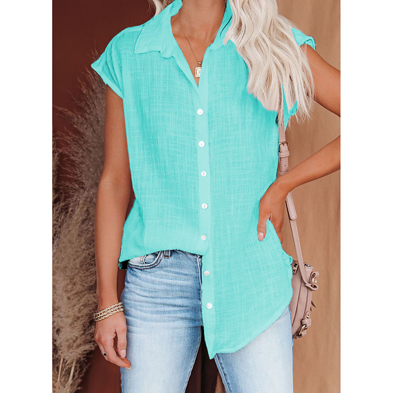 Shirt Blouse Women's Black White Yellow Plain Button Street Daily Fashion Shirt Collar Regular Fit S