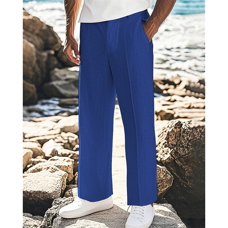 Men's Linen Pants Trousers Summer Pants Beach Pants Pocket Plain Comfort Breathable Vacation Daily Holiday Hawaiian Boho Black White