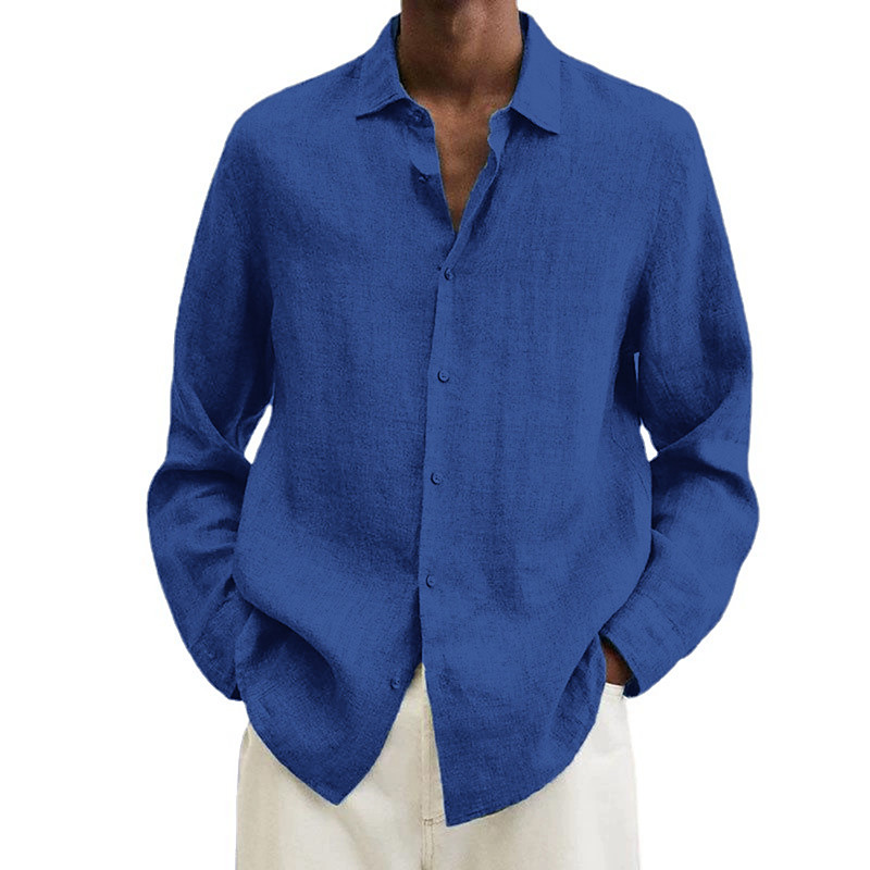 Men's Cotton Linen Shirt Black Pink Navy Blue Long Sleeve Plain Turndown Vacation Holiday Clothing Apparel Polyester Fashion Casual