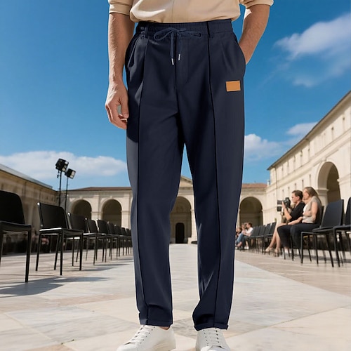 Per uomo Pantaloni Pantaloni Estivi Pantaloni da Spiaggia Coulisse Elastico in vita Gamba Dritta Semplice Comodità Traspirante Lunghezza intera Casuale Quotidiano Ferie Vacanza Moda Blu Nero