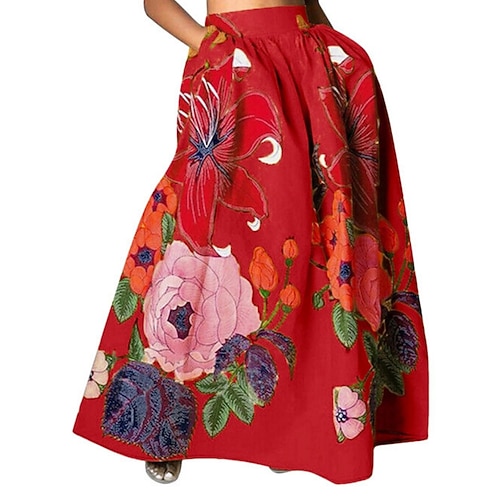 Per donna Bohemien Moda Casual Maxi Vita Alta Gonne Floreale Pieghettato Floreale Stampato Inelastico Micro-elastico Quotidiano Ferie Nero Bianco Giallo Rosso Estate Poliestere