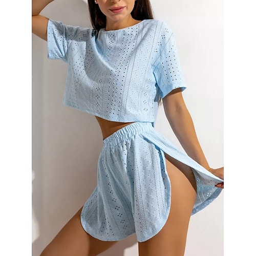 Per donna Set Pigiama Casual Comfort Colore Puro Elastico in vita Foro Shorts Quotidiano Casa Manica Corta Girocollo Blu Nero Bianco Rosa Viola Estate Primavera Vestibilità comoda