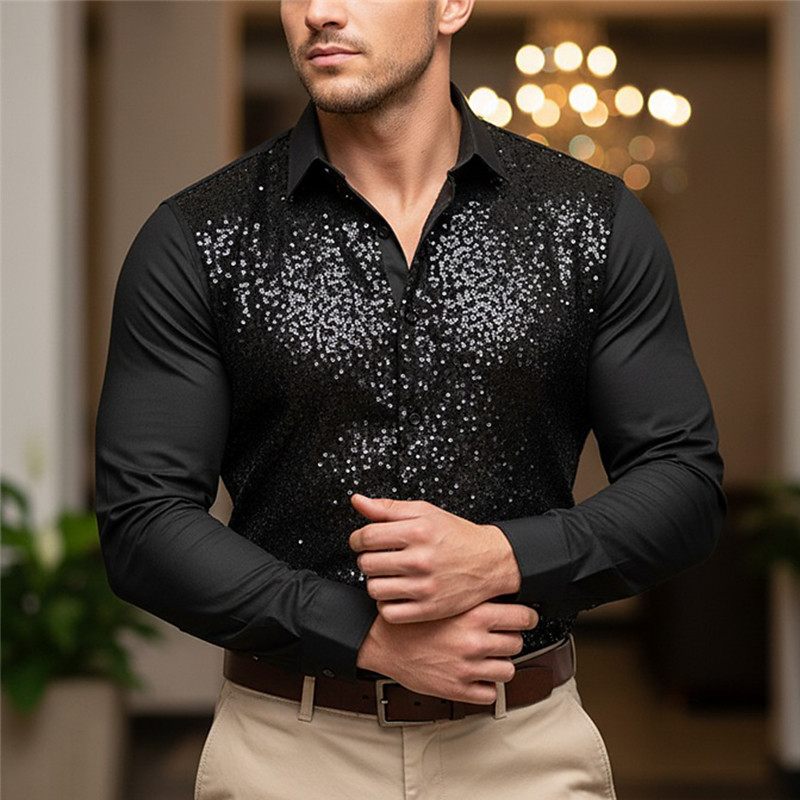 Men's Shirt Satin Shirt Dress Shirt Button Up Shirt Prom Shirt Gradient Party Wedding Black Yellow Red Blue Long Sleeve Turndown All Seasons Clothing Apparel Sequins