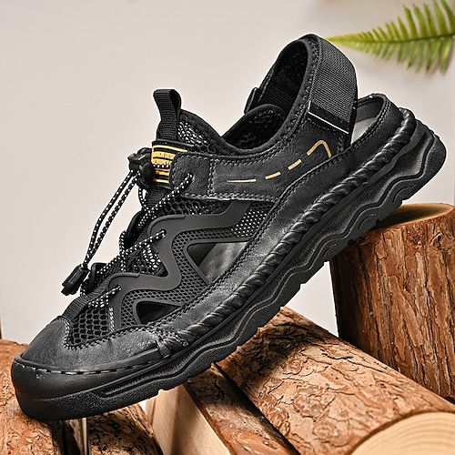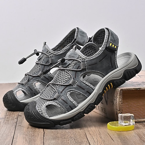 Sandali da trekking da uomo, marroni, con punta chiusa, tomaia in mesh traspirante, suola ammortizzata, stile avventuroso per adulti, adatti per sentieri di montagna, passeggiate nei boschi, campeggio estivo