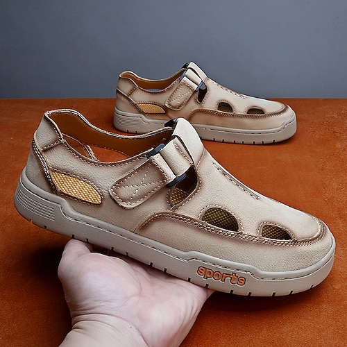 Sandali da pescatore da uomo beige, traspiranti, con intagli e cinturino con fibbia, ideali per vacanze, viaggi, tempo libero in giardino, uso quotidiano e stile casual estivo all'aperto.