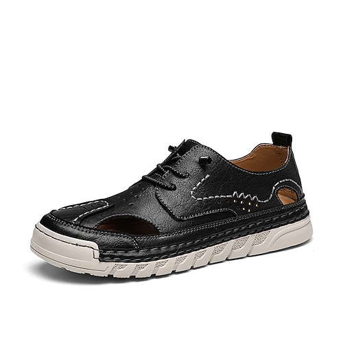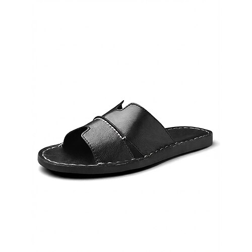 sandali da uomo in similpelle marrone, tomaia cucita a mano, plantare comodo, stile casual rilassato, adatti per il tempo libero estivo e per l'uso interno