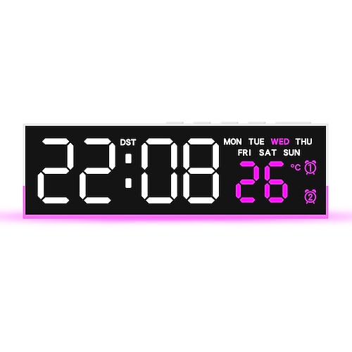 moderna sveglia digitale a led con doppio allarme luce inferiore soffusa, visualizza ora, data, giorno, temperatura, luminosità automatica/manuale a 3 livelli, orologio da tavolo alimentato a