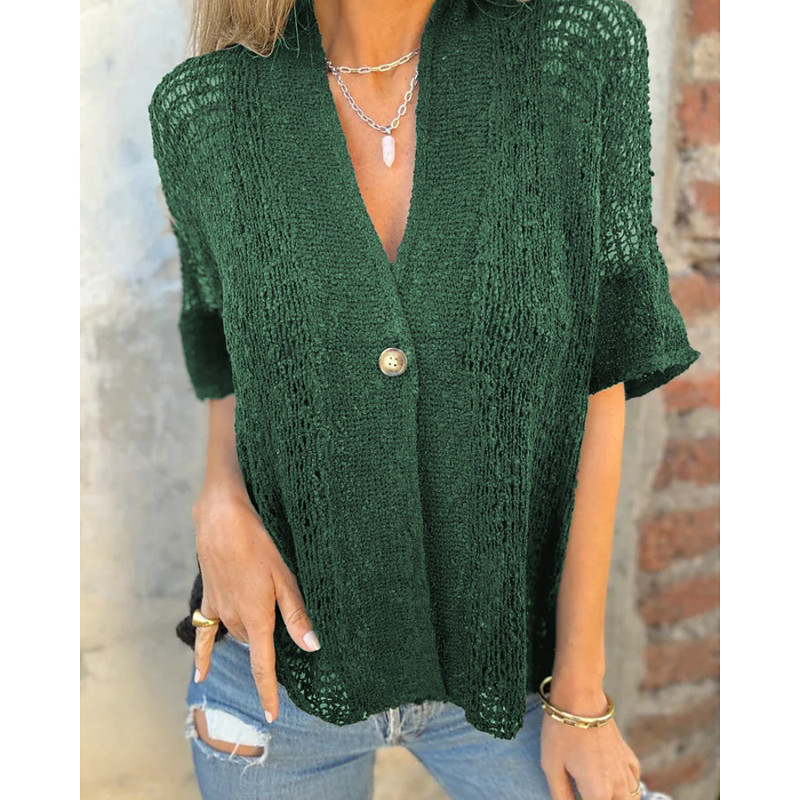 Women's Shirt Blouse Plain Vintage Stylish Short Sleeve V Neck Regular Tops Crop Tops Daily Holiday Going out Eyelet Black White Pink Brown Green Summer Spring