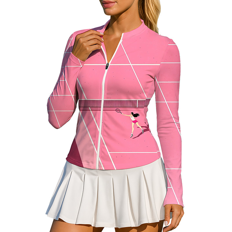 Women's Cartoon Geometric Color Block Tops Shirt Sport Shirt Golf Polo Shirt Long Sleeve Zipper Classic Sporty UPF50 UV Resistant Trainer UV Protection High Elasticity Pilates Volleyball Tennis Crew